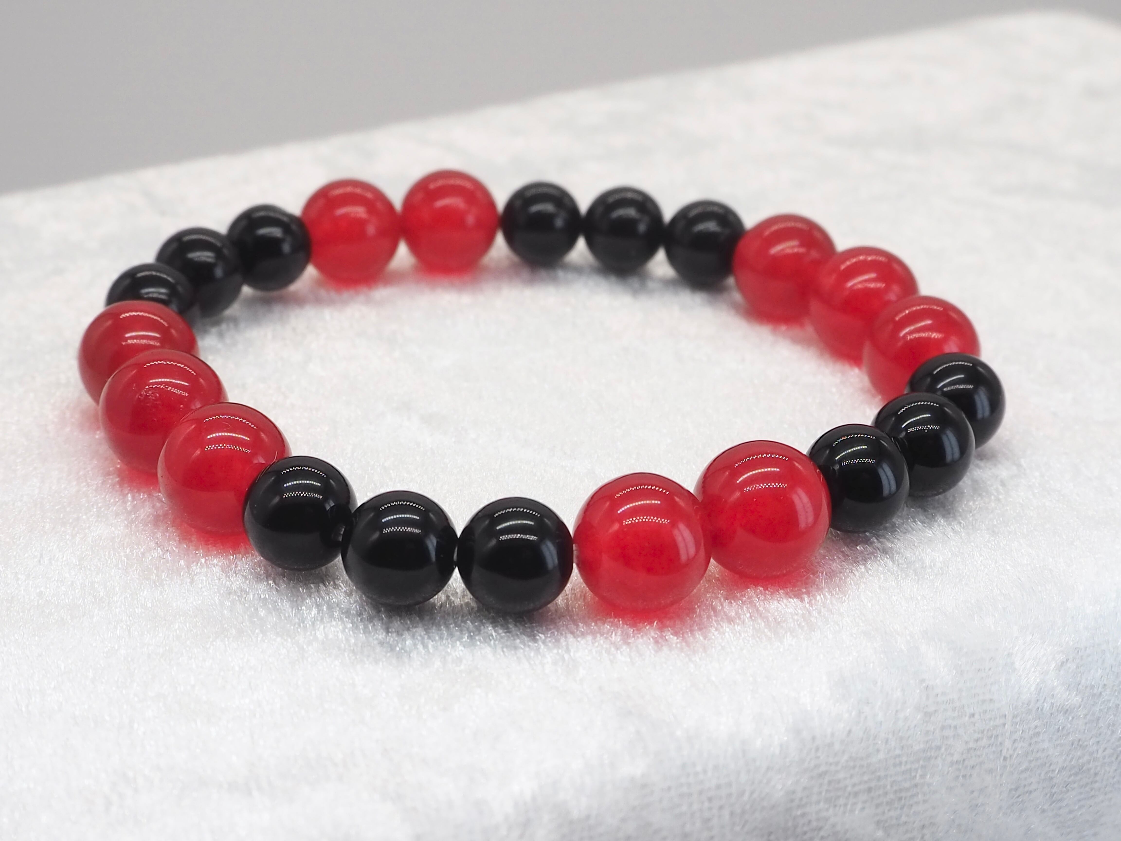 レッドジェダイト(翡翠)とブラックオニキスのブレスレットです。