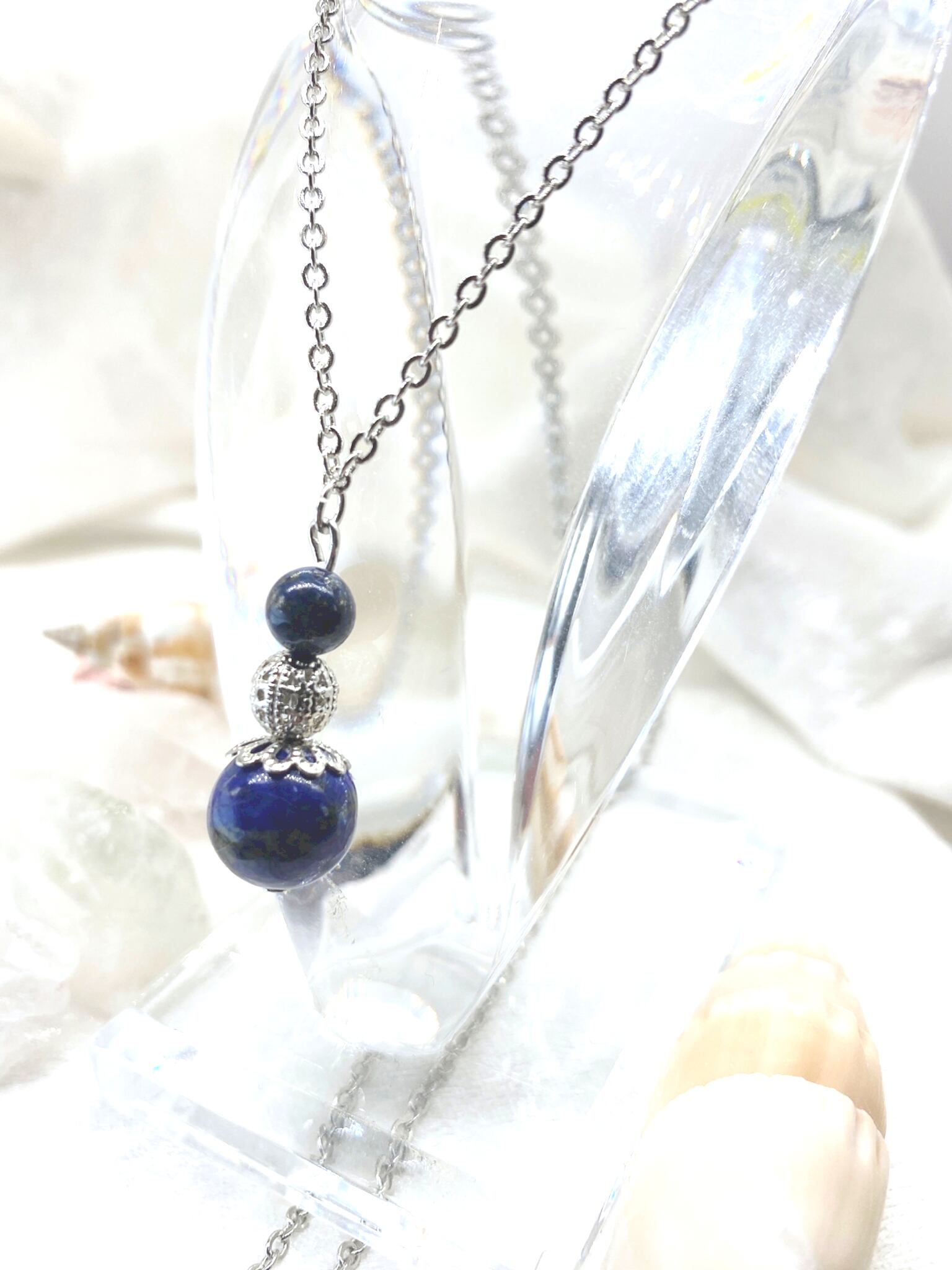 胸元のあいた服をお召しの時にチラッと見えるラピスラズリがご本人様を輝かせてくれるはずです。