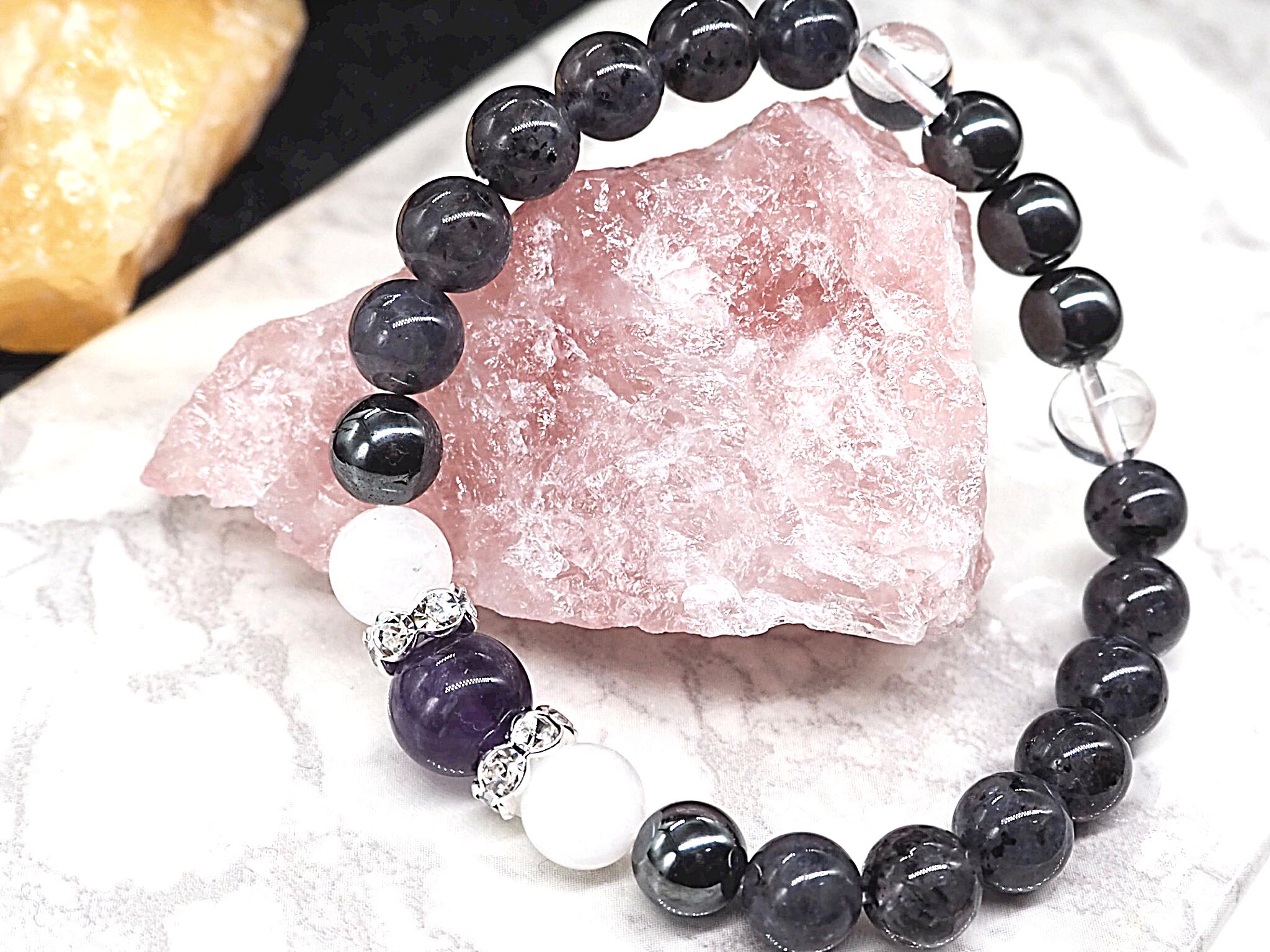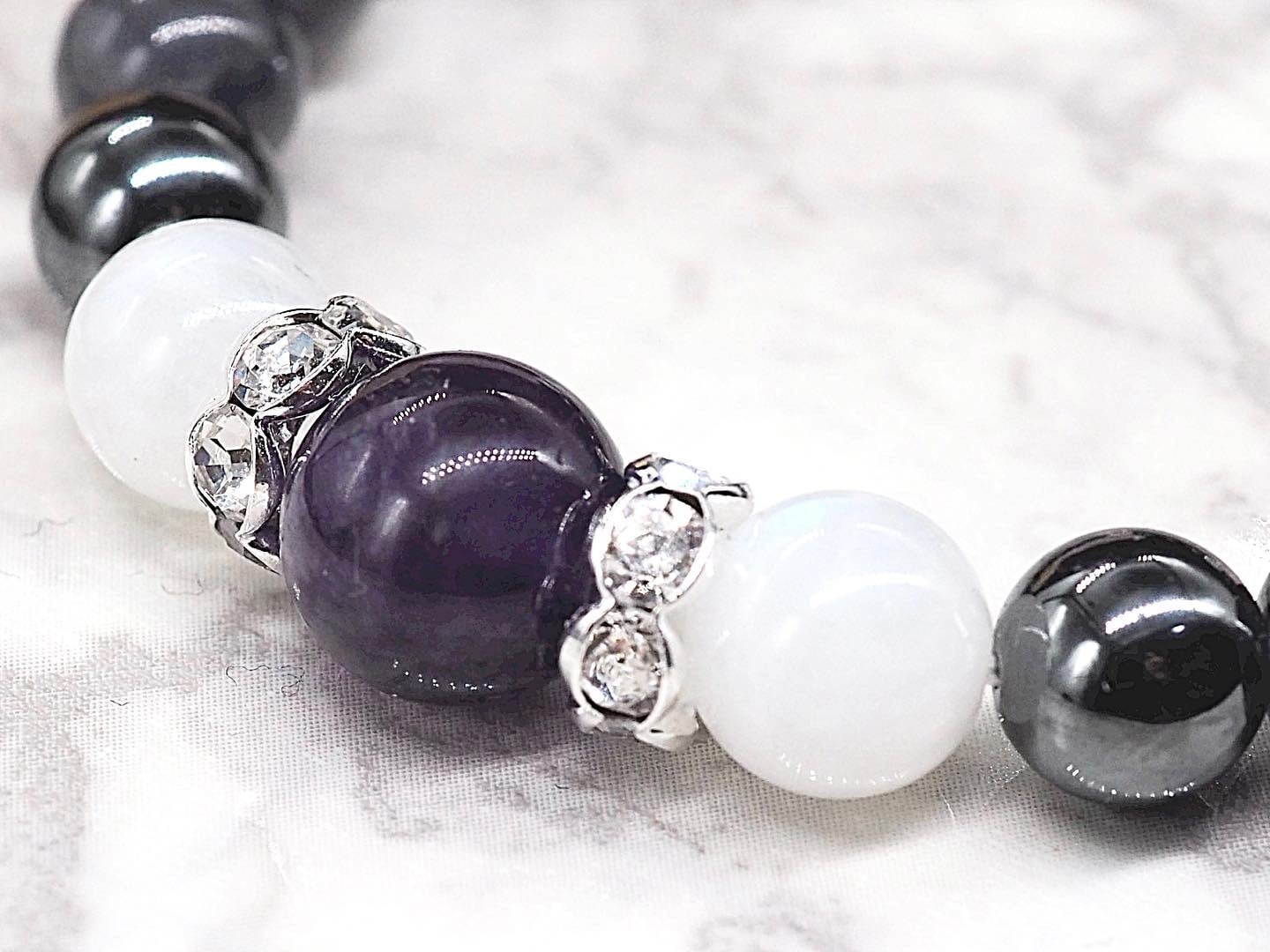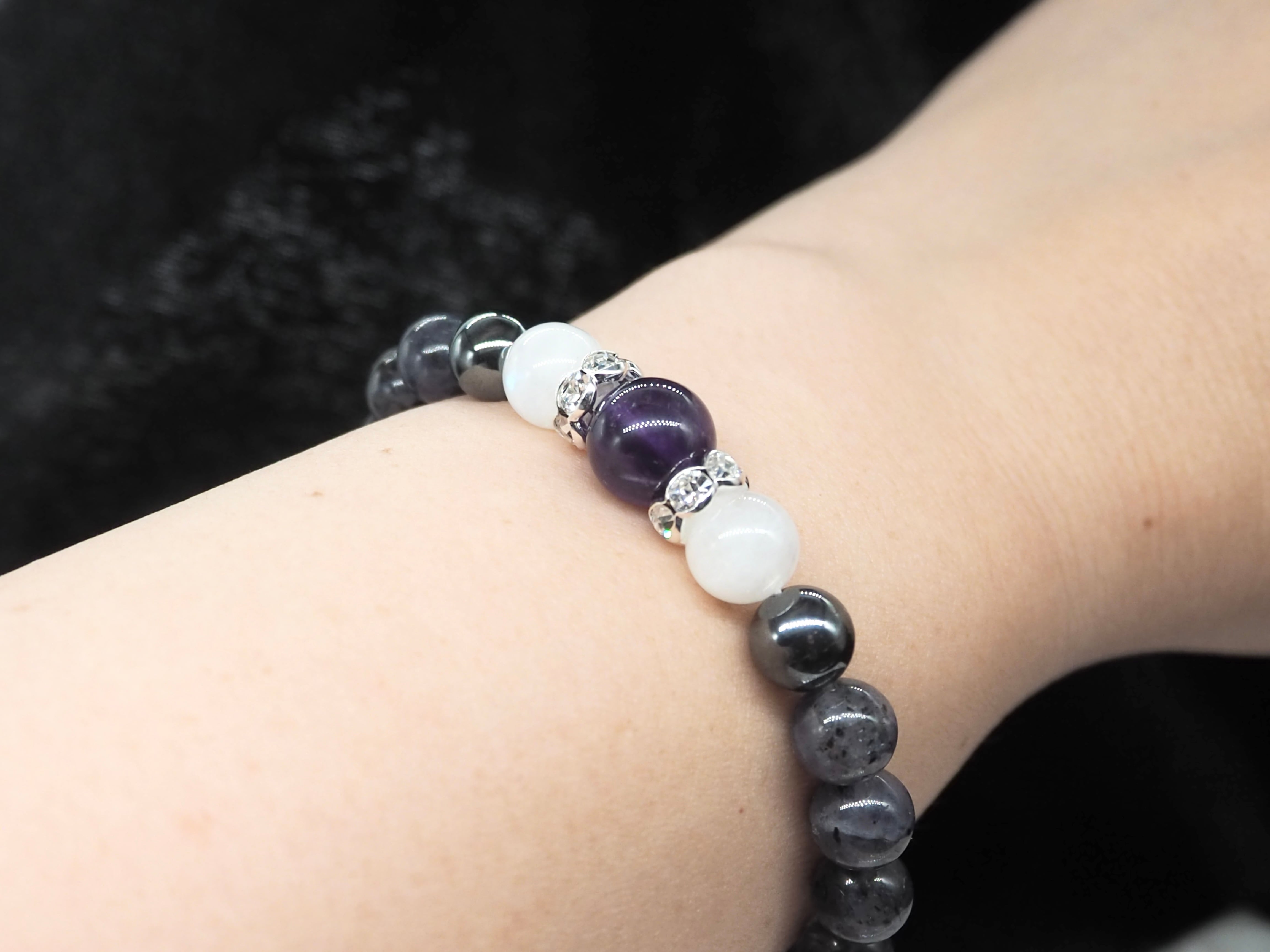 アイオライトご要望でしたので、相性のいいアメジストとムーンストーンを組み合わせたブレスレットに